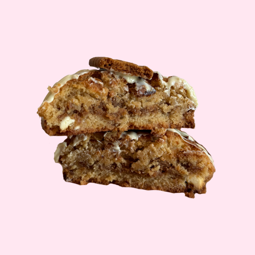 Romig, kruidig en met een flinke crunch. Deze chunky chewy droomkoek van ongeveer 160 gram heeft een zachte biscoff spread vulling, witte chocolade stukjes en knapperige stukjes lotuskoek. Alles wat je liefhebt aan biscoff — maar dan in koekvorm.
